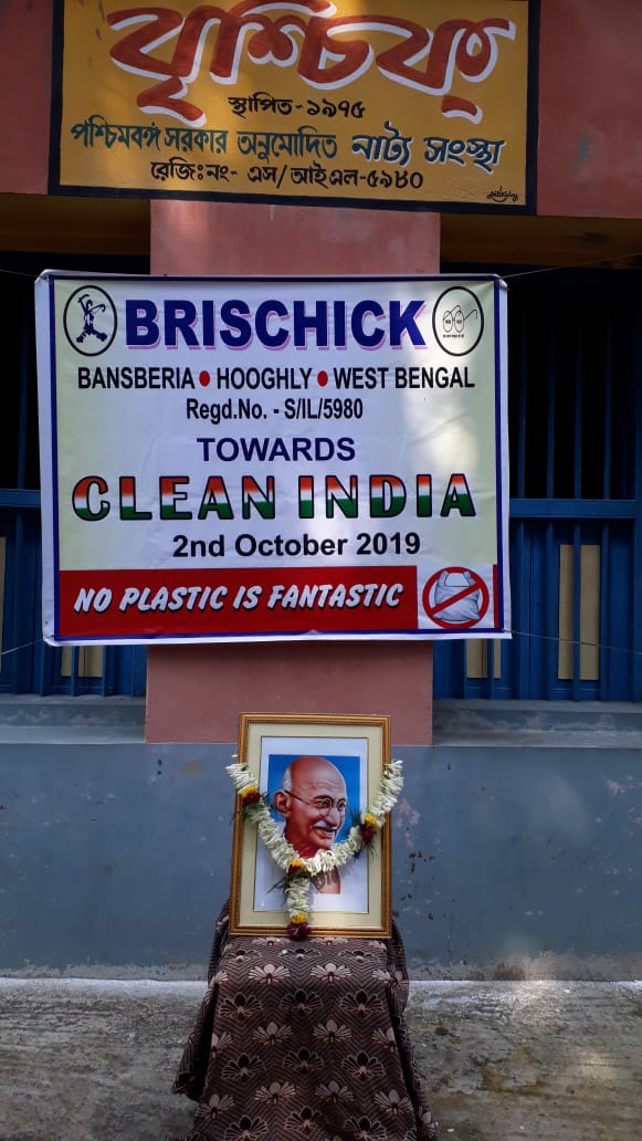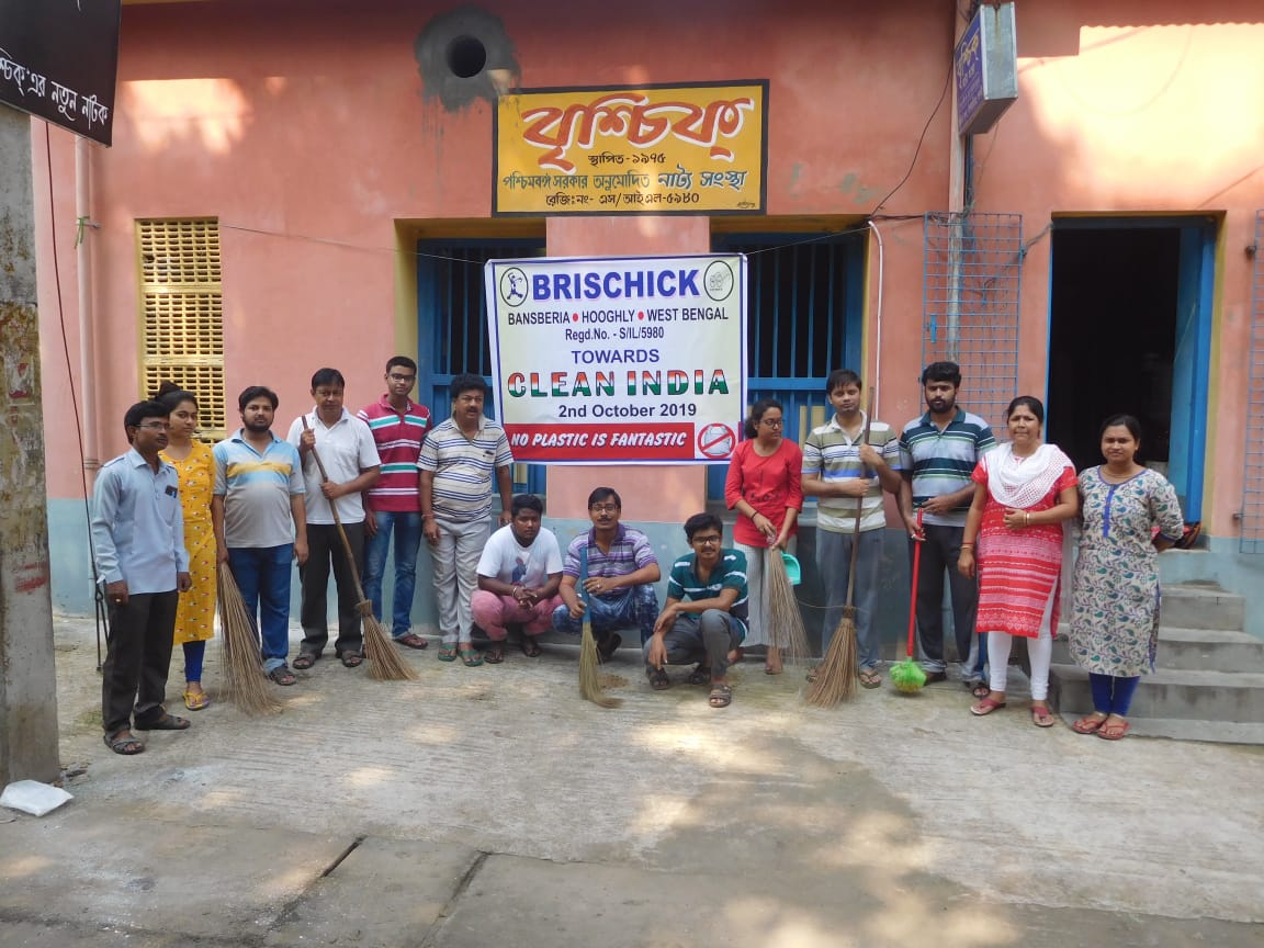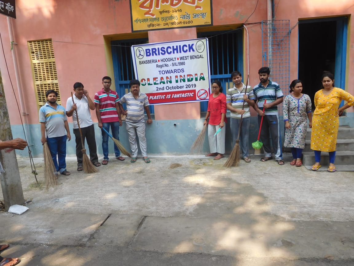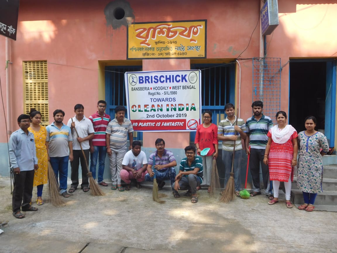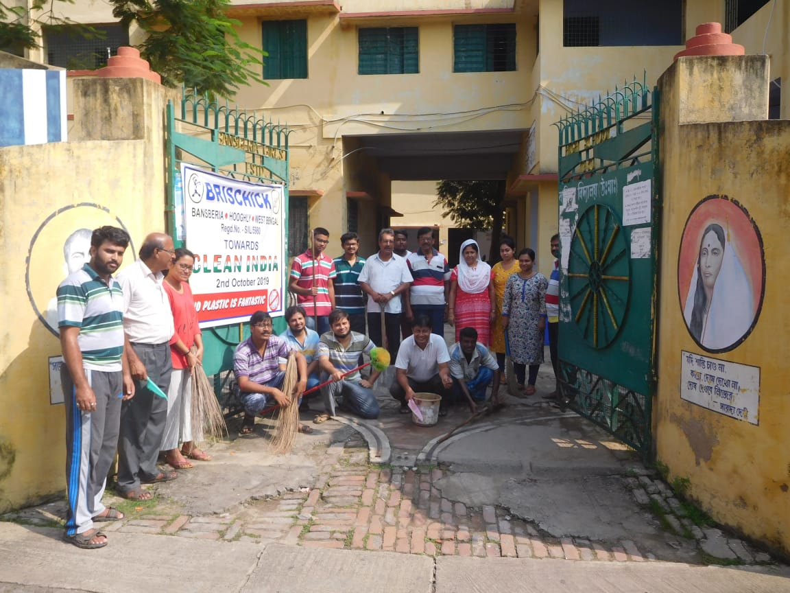 On the birthday anniversary of Gandhiji, The Father of Our Nation, Clean India Campaign was performed by Brischick Natya Sanstha. We celebrated the auspicious day by cleaning Bansberia Girls’ High School. We started the campaign from 8:30 AM and continued till 11:00 AM.The school was cleaned properly by dusting and collecting waste materials from every corner of the school. Everyone of our team were very supportive. They showed tremendous zeal and enthusiasm.It was not only Clean India this year, we also focused on No Plastic.The programme ended by paying respect to Gandhiji, Debaditya Paul, Prasun Adhikari, expressed their thoughts on the great man.President Swapan Ghosh along with Secretary Pradip Kundu paid tribute to the Legend.Sabyasachi Mukhopadhyay recited his self written beautiful poem ‘PITA’ where the journey of Gandhjis’s life has been summarized. At last our guru, Tapas Mukhopadhyay, shared many unknown facts about Gandhi ji and ended the programme with a hope that someday the dreams of Gandhiji will come true.